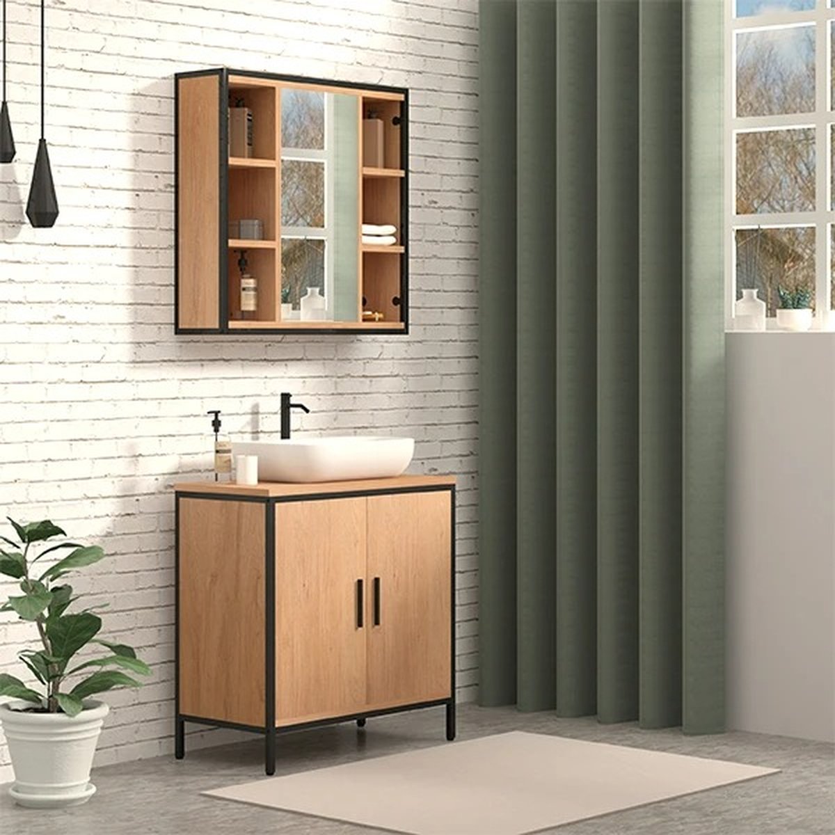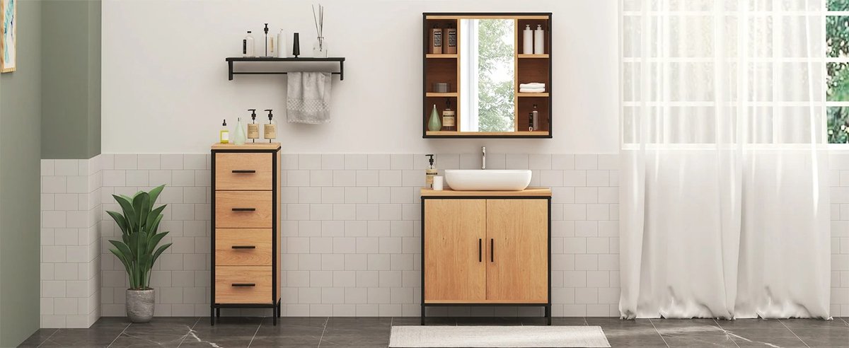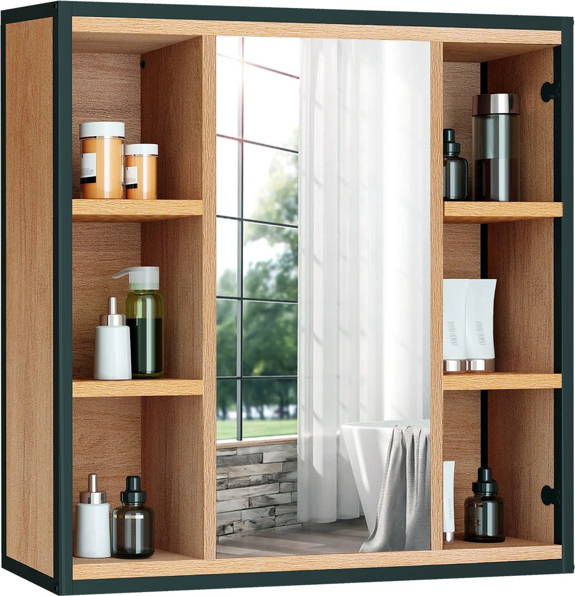 Whoopr Badkamermeubel met Spiegel, 6 Vakken & Plank Verstelb
