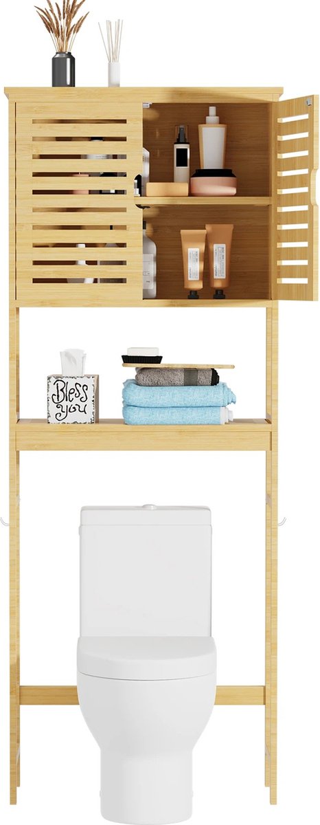 Whoopr Bamboe Toiletopbergkast Vrijstaand WC-meubel 99x32 cm