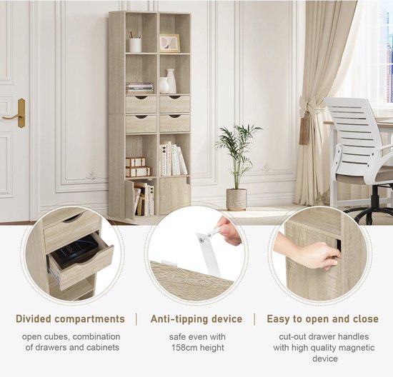 Boekenkast met Lade en Deur – Staande Plank voor Woonkamer & Kantoor