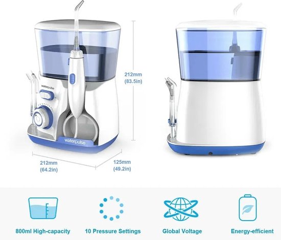 Denta Pure Monddouche - Elektrische Waterflosser met 800ml Reservoir - Tandheelkundige Reiniging en Mondhygiëne - Tanden Bleken & Verzorging Set
