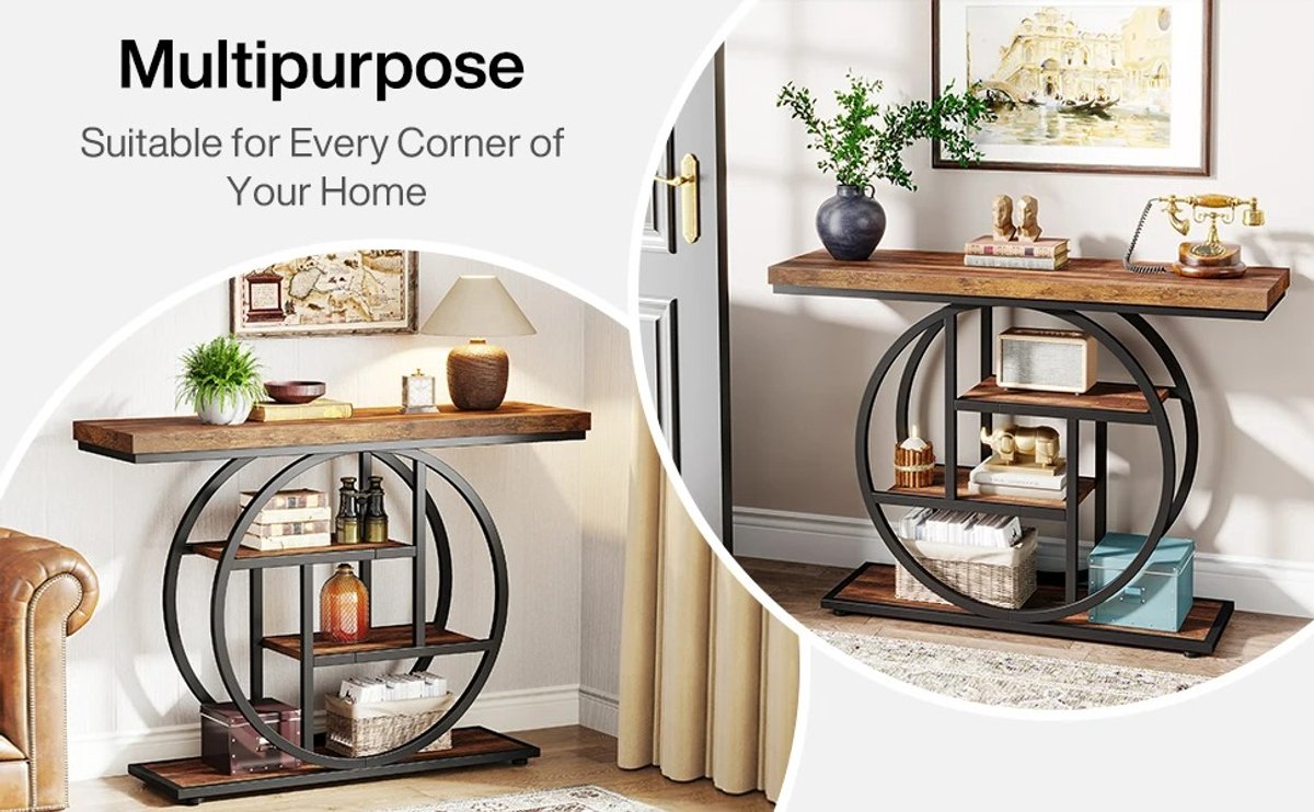 Industriële Consoletafel – 4-laagse Sidetable van Hout & Metaal (105 cm)