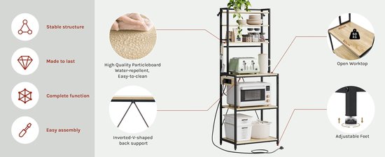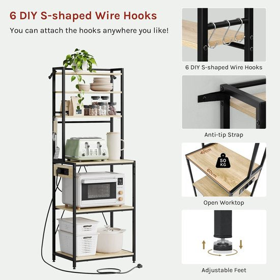 Keukenrek met stopcontact – 6-laags hout & metaal opbergrek
