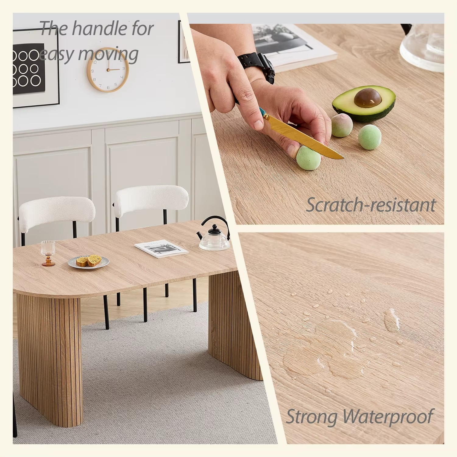 Ovale Eettafel 180×90 cm – Scandinavisch Design, Massief Houten Blad voor 6–8 Personen