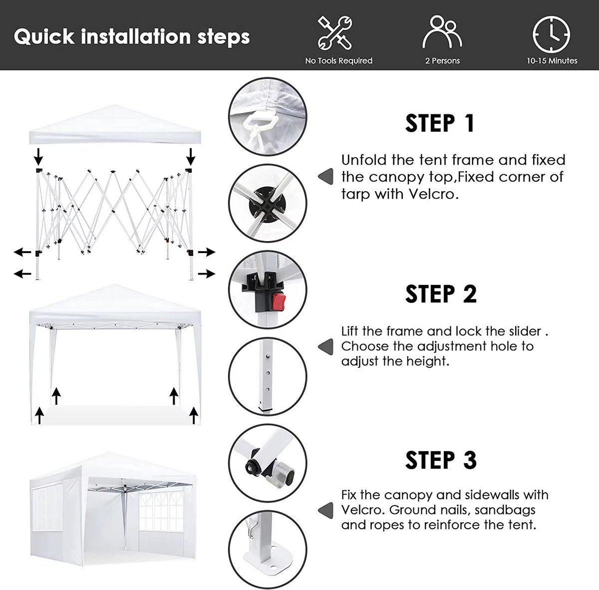 Pop-up Partytent 3×3 m – Easy Up Paviljoen met Zijwanden & Ramen