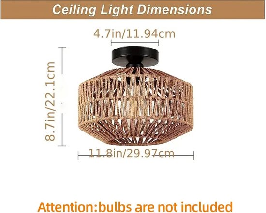 Rotan Kroonluchter Plafonnière – Handgeweven Bamboelamp 30x22 cm