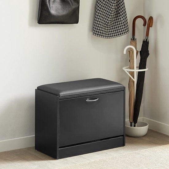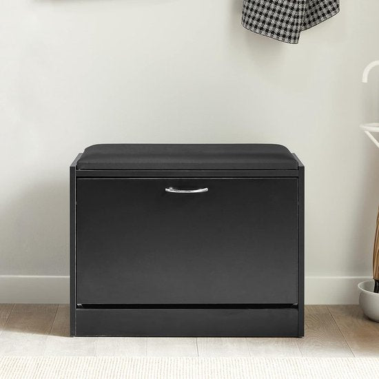 Schoenenbank met Zitkussen – Zwart Schoenenrek en Opbergkast