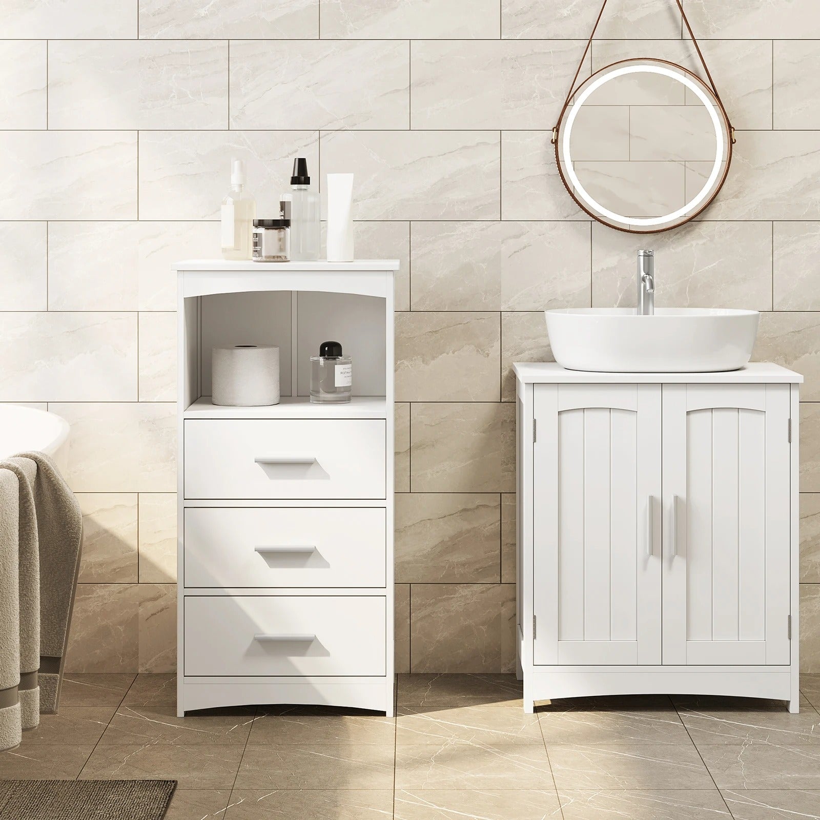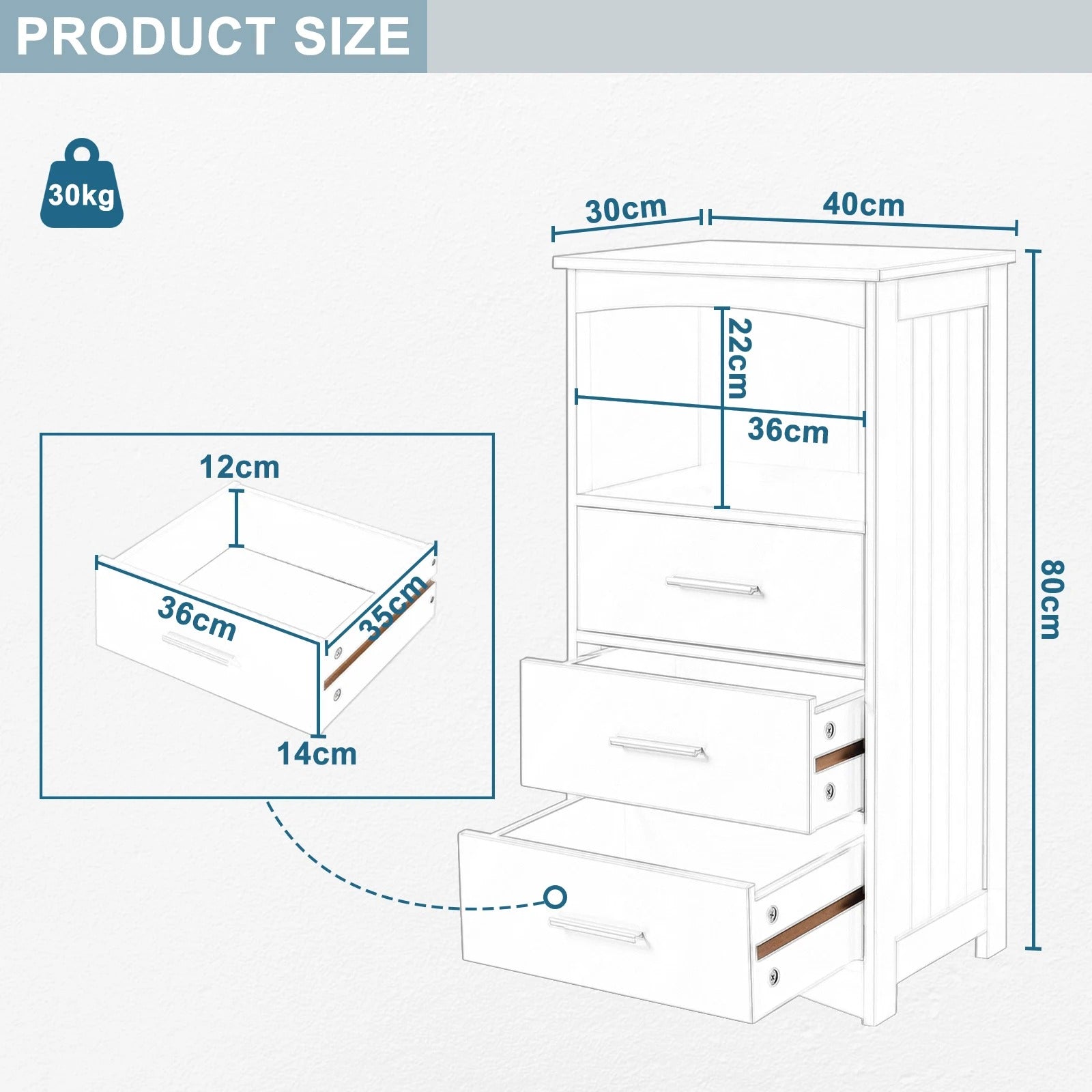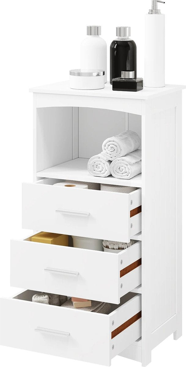 Whoopr Witte Hoekkast Badkamer 3 Laden Open Vak 40x30x80 cm